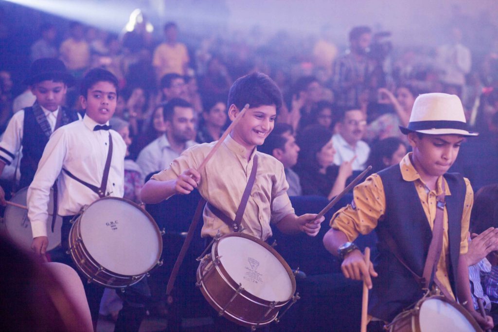 An extravagant musical treat was presented by the students of Arpeggios Music Factory on 24th Oct, Saturday evening. From the unforgettable bollywood tunes to the all time Classic Hotel California , the Guru Nanak Dev Auditorium witnessed it all. From the Djembe beats played by the young arpeggians to Adele’s Rolling in the deep performed by the all girl band, the little artistes made the evening special for the full packed audience.The much awaited “OCTOBER RUSH” An annual Music Concert was presented by the music institute. Mr. Albert John , Director of Arpeggios, was impressed by his students wonderful and splendid performance on the stage. Parents of the performers were overwhelmed by the spectacle and were delighted to see their kids perform on such a grand platform. All the acts were beautifully performed and the amazing confidence instilled in the students was a cumilation of the Hard work of the teachers . A Tribute was paid to the great Michael Jackson and his message of love and world peace was much emphasized by the young musicians of Arpeggios. Garaj Baras was another spellbinding performance featuring the rock band accompanied by a whole squad of drummers , playing the drum beats in a perfect foot tapping rhythm .